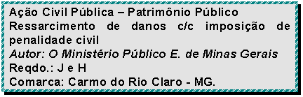 O MINISTÉRIO PÚBLICO DO ESTADO DE MINAS GERAIS, por seus representantes em exercício perante este juízo, no uso de suas atribuições, vem à presença de V. Exa. propor a presente ação de que esta subscreve propor, com fundamento na Lei n.: 8.429/92, propor a presente AÇÃO DE RESSARCIMENTO DE DANOS CUMULADA COM PENALIDADE CIVIL, com requerimento de medida liminar, contra os senhores